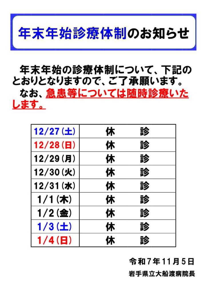令和7年度年末年始診療体制について
