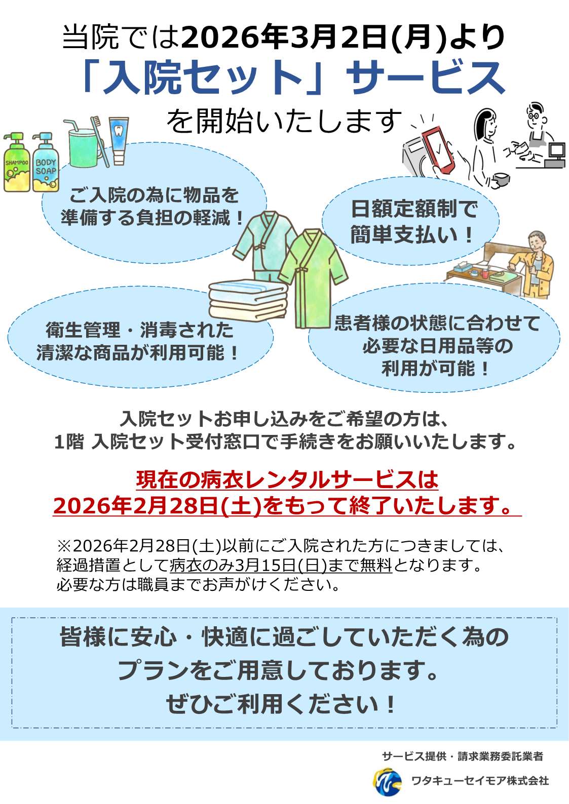 令和8年3月2日より入院セットサービスを開始します。
