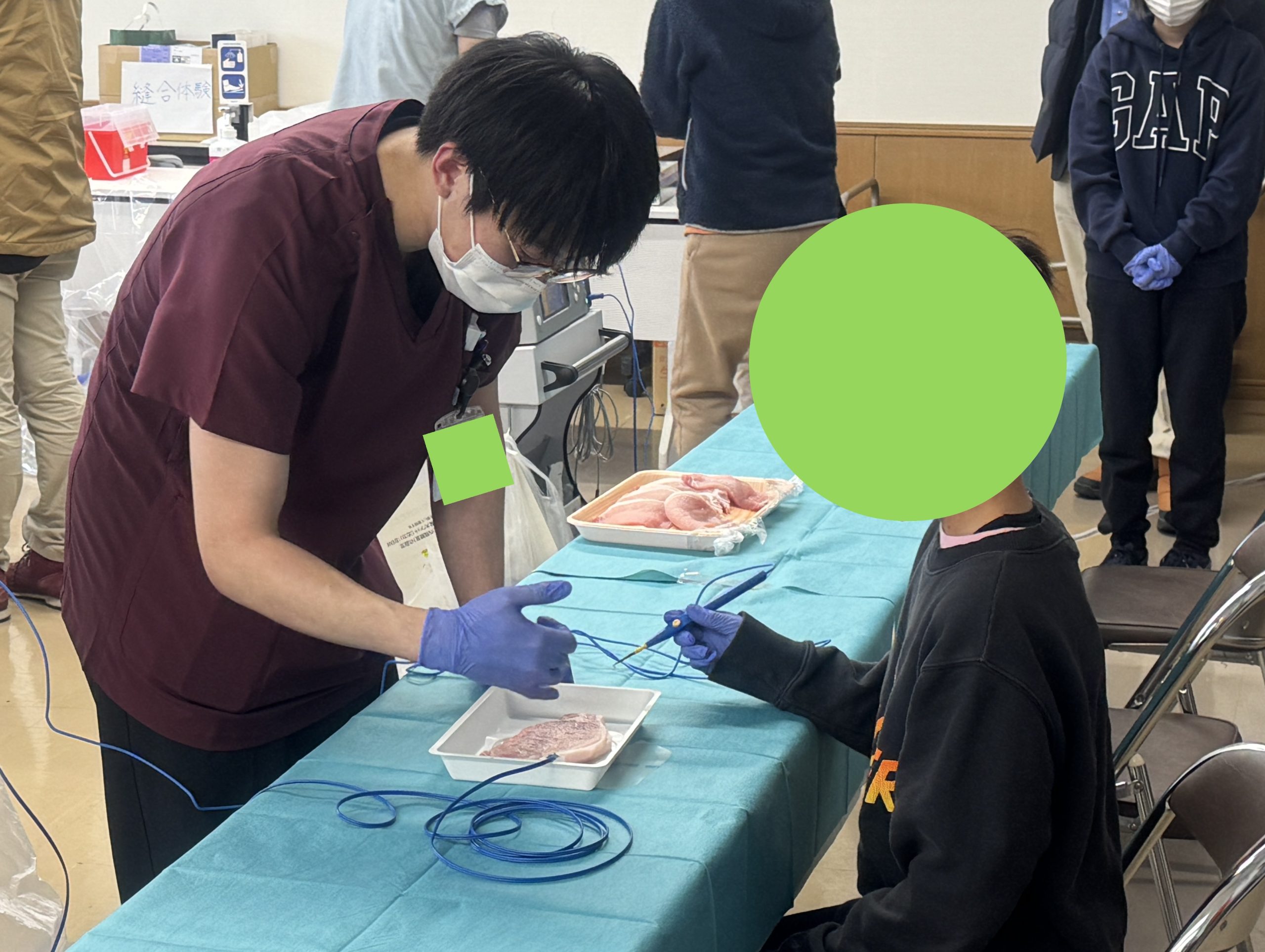 気仙3市町や近隣の市町の児童・生徒が参加し、超音波エコーや電気メスといった体験をしました。